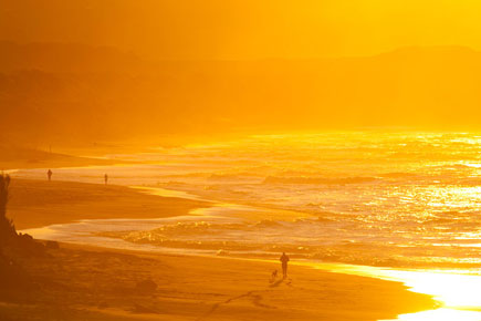 Later, I watch the sunset from the headland at Second Beach, a few minutes walk south from St. Clair Beach. Forests of kelp, anchored to the weathered volcanic rocks, sway to and fro with the swells. The distant hillside suburbs of the city are awash with golden light as the sun sinks towards the hidden interior of Central Otago where the golden fortunes of Dunedin’s early days were found.