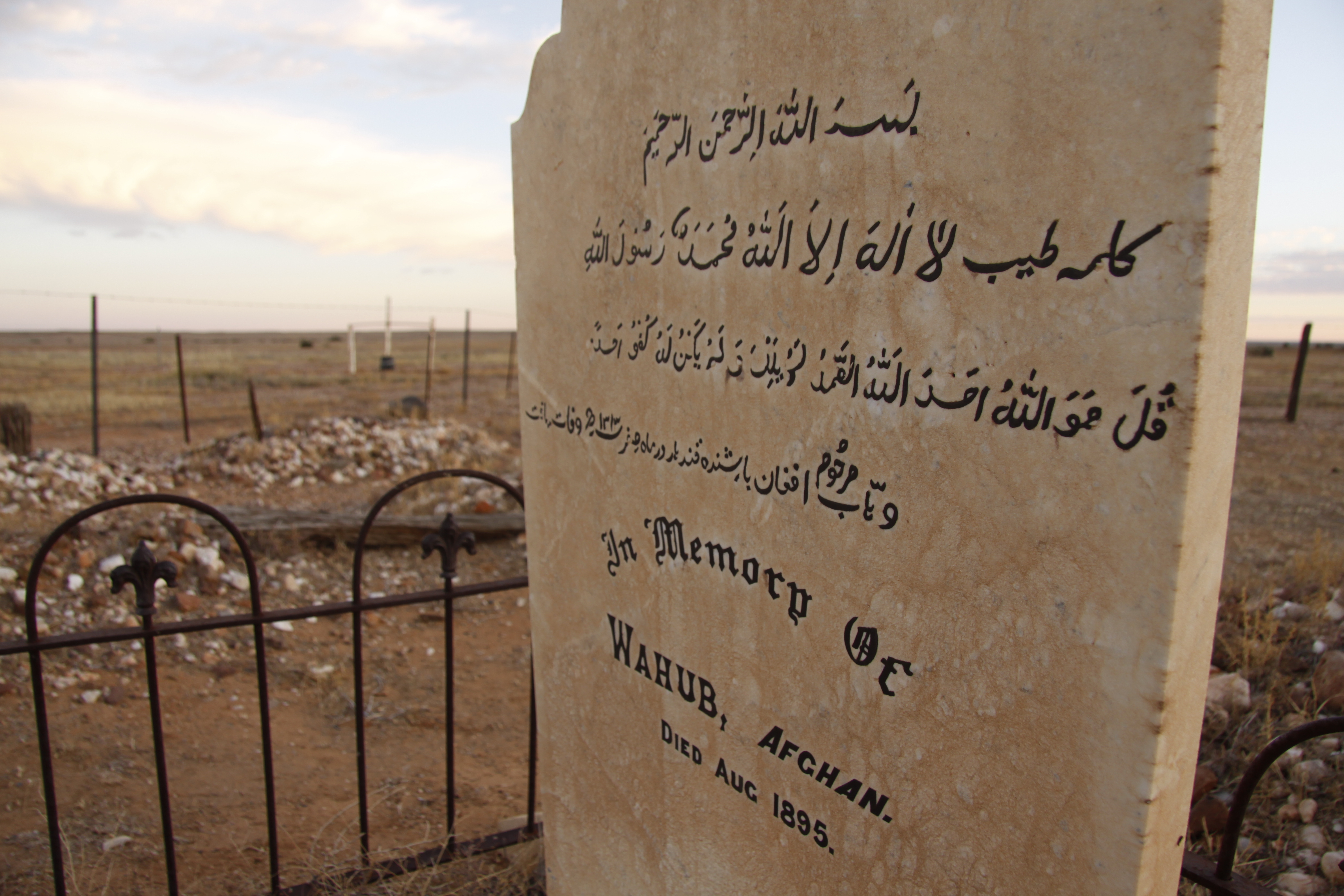 At dawn I am sitting among the graves of Afghan cameleers. In the early days of Australia’s settlement, camels were the only way to transport supplies to the lonely stations and isolated communities of Central Australia. Marree was the last outpost of civilization before the emptiness of the desert, and the Afghans with their camels were perfectly suited to the job of conveying goods north.