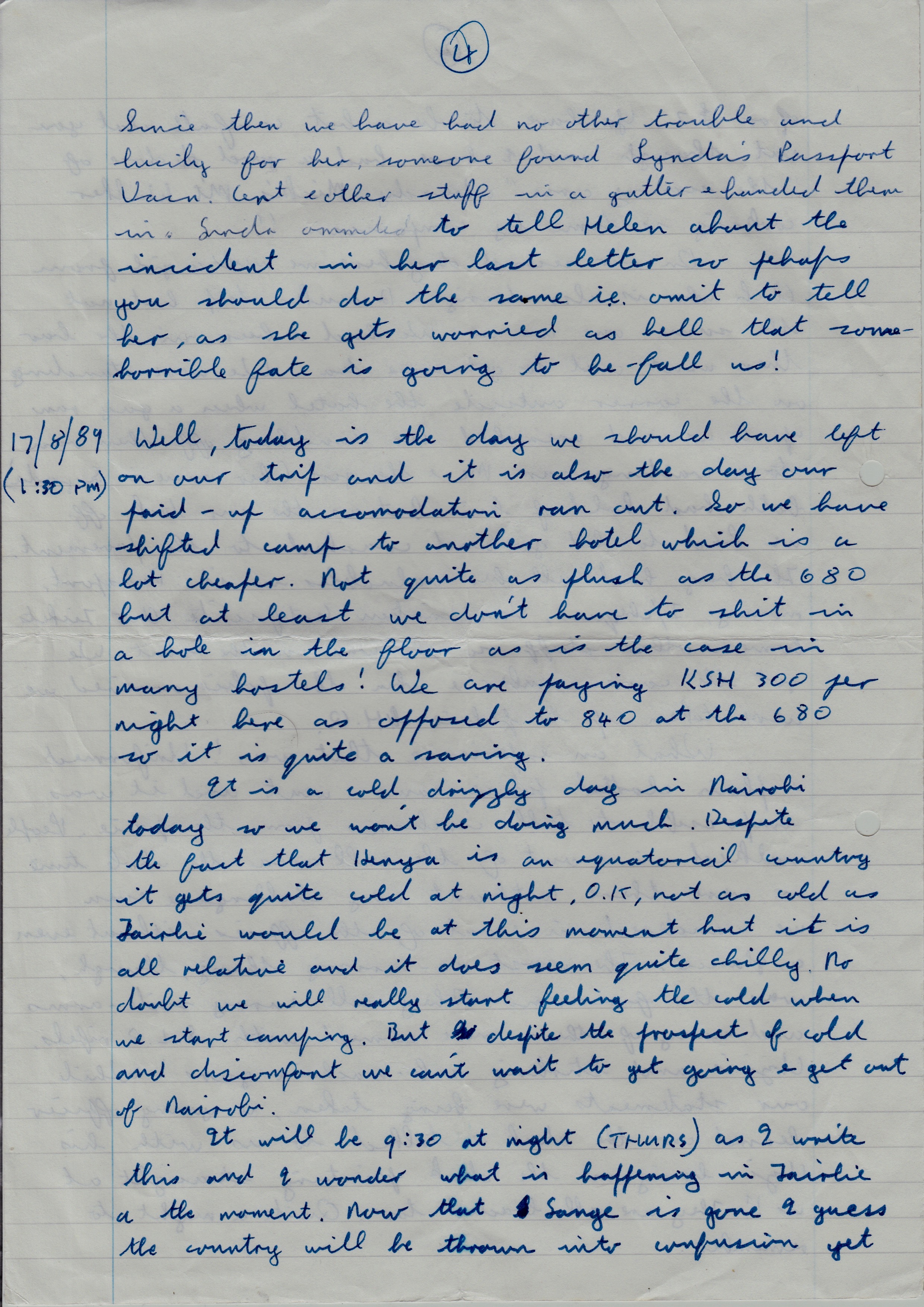 We went round to the Zaire Embassy and picked up our passports. The visas cost K/SH 160 each which is £5. I have got a dose of the shits so didn’t do much all day.