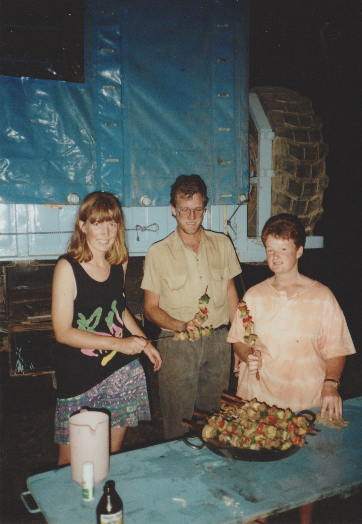 DAY TWO We got up at about 7:15 and got the fire going. A couple of Masai herd boys came along while we were having breakfast and we gave them tea, toast and bread in exchange for them letting us take their photos. We packed up the truck and were on the road by 8:50. I sat up in the cab with Mike and we yarned away while the stereo played “Diesel and Dust.”¹