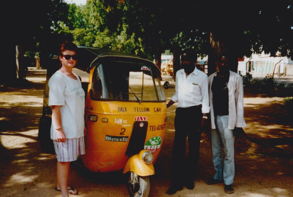 At 12:00 Adu came for us in a little three-wheeled mini-cab called a tuk-tuk to take us on a tour of town. He took us for lunch at a little hidden restaurant where we had salad, plantain & chicken then to his house which is provided for him by the government. It is a very comfortable little two-room place set in its own walled courtyard. Furnished with settees, carpet, TV etc it was a hell of a lot nicer than most of the houses we have seen. We assured Adu that it was a great home but I’m sure he was aware that it is pitifully small compared to our houses in the west. We took some timer photos of the three of us and promised to send him copies.