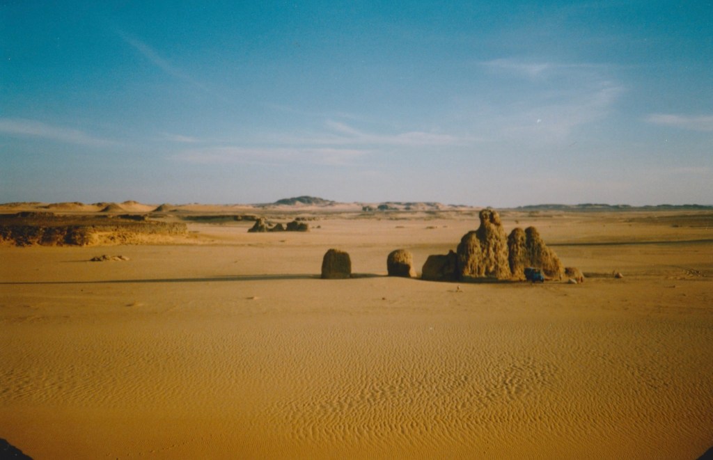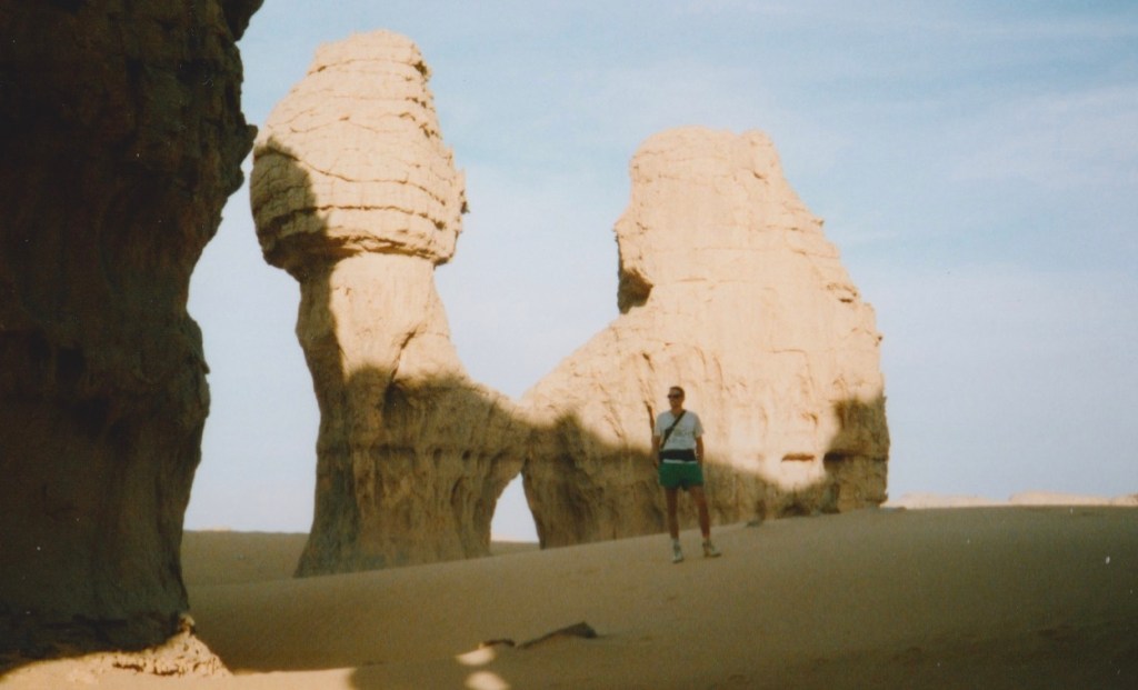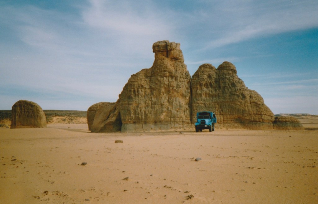 DAY SEVENTY-TWO Out across the early morning sand, a figure was walking towards us with a sack perched on his head. Scotty had returned!! He had a long story about taking all day getting back to Arlit, getting pissed and laid that night, spending all next day forging a letter of authority and then finding a lift back to the border in a taxi. The “taxi” was crammed with 18 people and suffered a broken spring which meant they had to spend a night in the desert then hitch a ride with another truck. The trip wasn’t a waste though, as not only did he get the letter done but he met 3 guys, an Algerian & two Tunisians, one of whom knew the border officials and could get us through “no problem.”