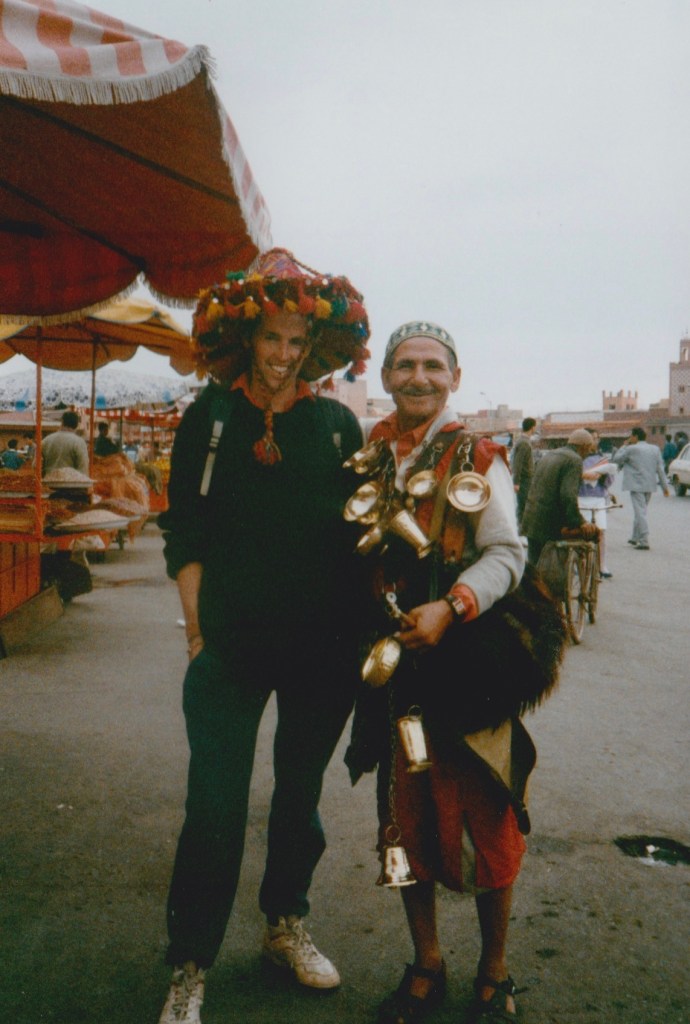 About 11:30 we walked over to the market to begin our exploration of its dim and mysterious reaches. We entered one of the passageways and the hassling began. “Come and see my shop”, “cheap price” and all the other lines we have come to know in the markets of Africa. We went into a shop selling wood and brass items and bought a cedar-root domino set for 150 Dirhams (£12) then, later on, after a trip to a bank to change more money Linda bought her sought-after leather backpack for $US32. I also bought a belt for 20 Dirhams.