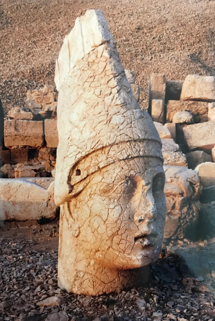 Nemrut Daği is the last resting place of Antiochus I, king of the land in High Mesopotamia called Commagene. Antioch I lived 2,000 years ago at a time of peace in the land between the rivers and had nothing to do but consider the afterlife and his passage into it. So he built on the summit of Nemrut Daği, 2,150 metres above sea level, a huge tumultus or funerary mound, flanked by huge statues of the Gods facing east and west.