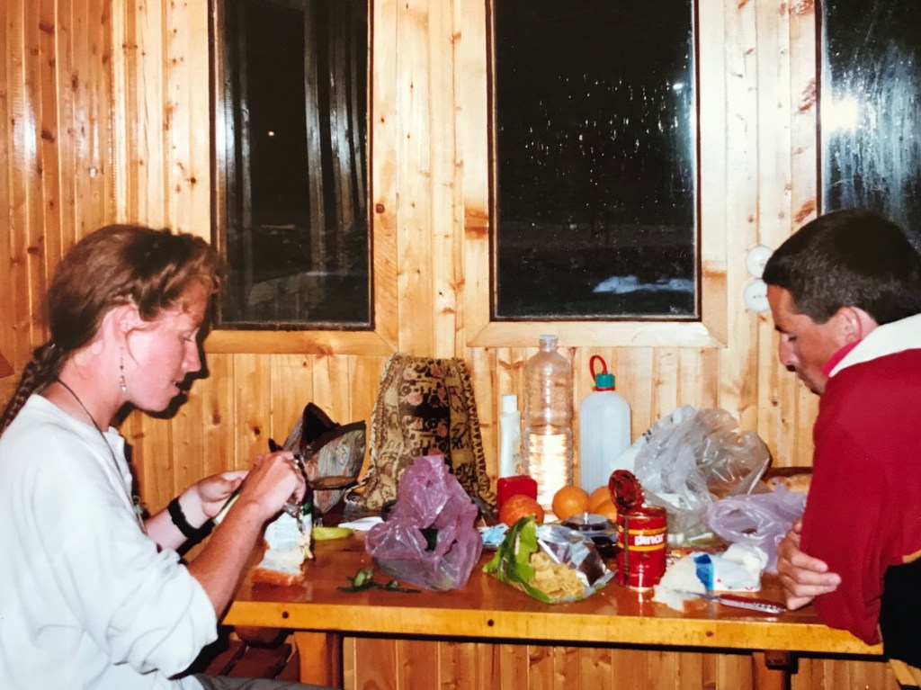 Back at the hotel, the mist had finally turned to cold driving rain so with the help of an American lady who spoke fluent Turkish we asked if we could sleep on the porch. The manager let us sleep in a little hut beside the river so we set up camp inside on the floor, had a meal then went back inside the hotel where it was warm.