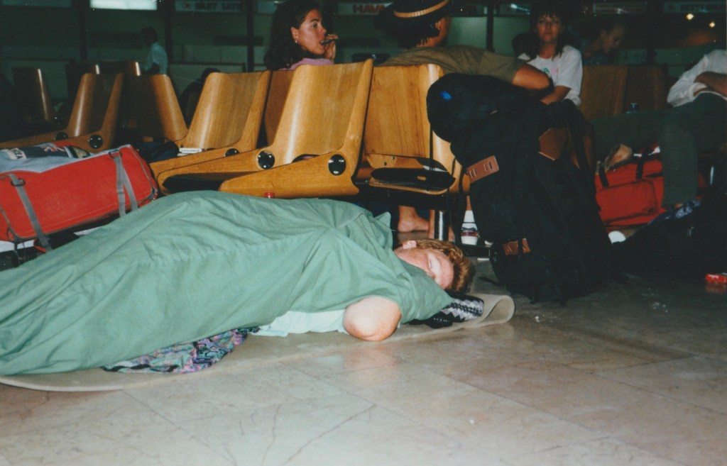 We were searched and had our passports checked just to get into the airport and our packs were x-rayed. Inside the airport we settled down to wait…