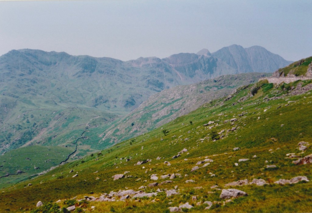 SNOWDONIA As we drove further into Wales the hills became higher and more rugged and soon we were following a long u-shaped valley up to a low pass. On the other side of the pass we came to the town of Bethesda, Gareth’s¹ home town, nestled on the side of the valley across from the huge scar left by a slate mine which had destroyed a large part of the valley.