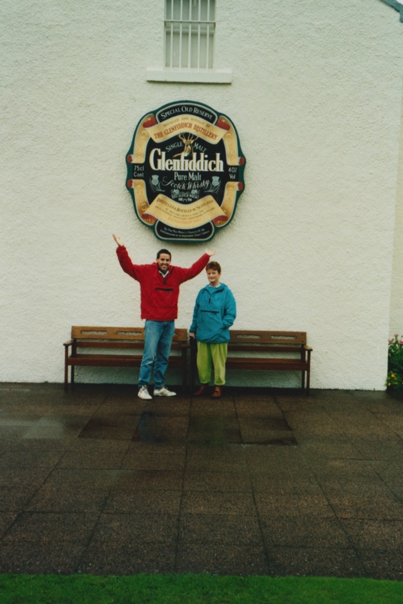 It was a cold wet day again but we paid a visit to the Glenfiddich distillery at Dufftown. The distillery, built by James Grant and which first produced whiskey on Christmas Day 1887, is a huge tourist attraction but despite the crowds we had an interesting tour of the place starting with a slideshow and finishing with a dram of the finest whiskey made. An added bonus was the three-quarter bottle of whiskey which the four of us each received by presenting our forged National Trust Heritage cards¹.