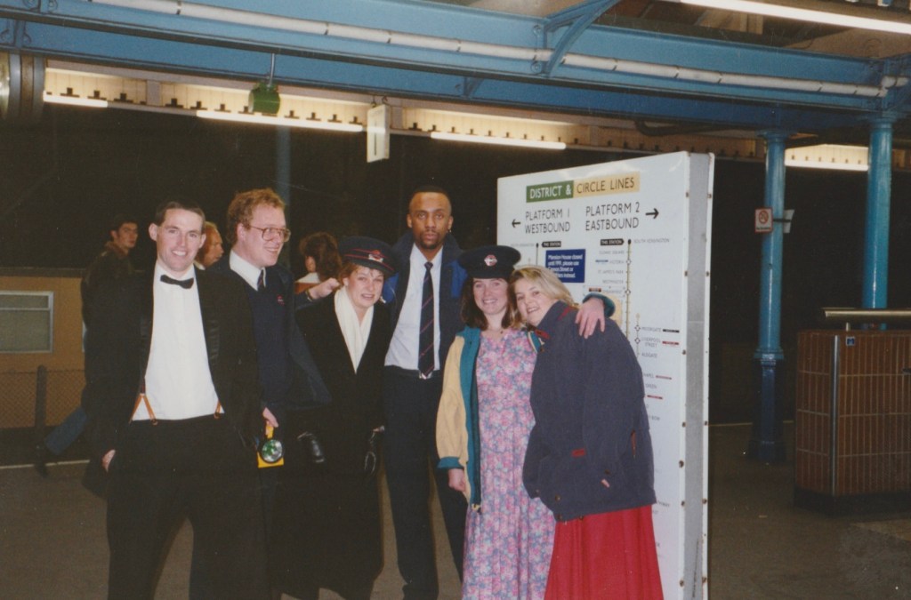 Two other girls turned up, Juliet Schikker ( “Shaker”) and Australian girl called Karen, and the five of us set off to Barons Court tube station. While we were waiting for the train we got our photos with a couple of platform guards. On the train, slightly pissed, Jenny and I recited poem poem that Tom Gilroy taught us: