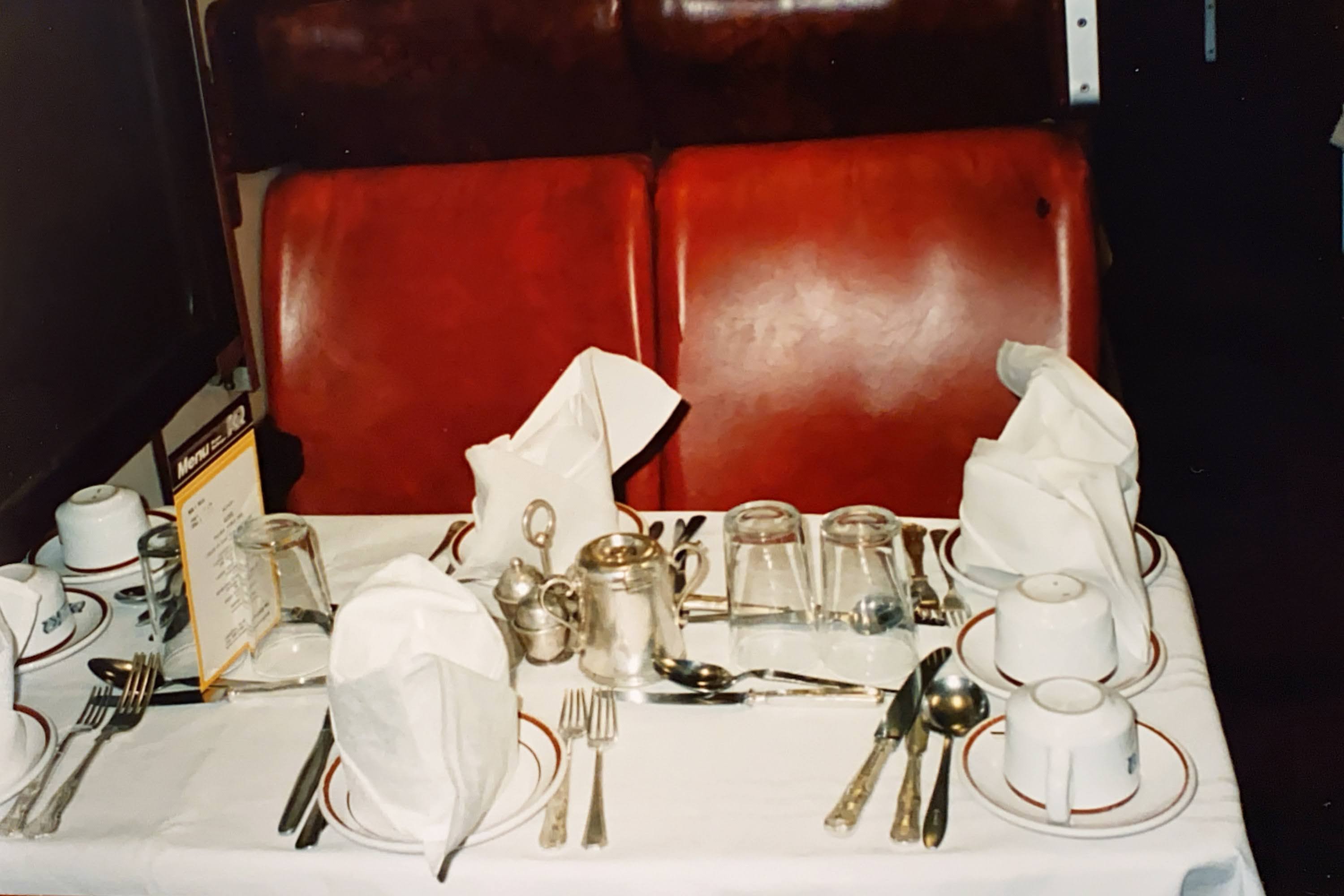 An attendant came round selling beers so the four of us bought one each along with some bottles of bitter lemon to drink with the vodka that Lawrence had brought with him. At 8:45 the gong rang for the second dinner sitting and Linda and I went along to the immaculately set out dining car which was complete with white linen table cloths and silver cutlery bearing the logo E.A.R&H – a relic of the old East African Railways and Hotels company. The meal was tasty and filling: soup, fish, curry, stew and pudding with tea or coffee to follow, all for the princely sum of 160 KSH (£3) each, a small price to pay for sampling the style of a by-gone era!