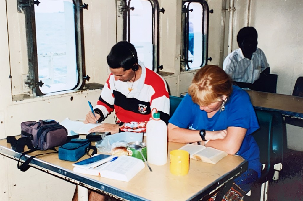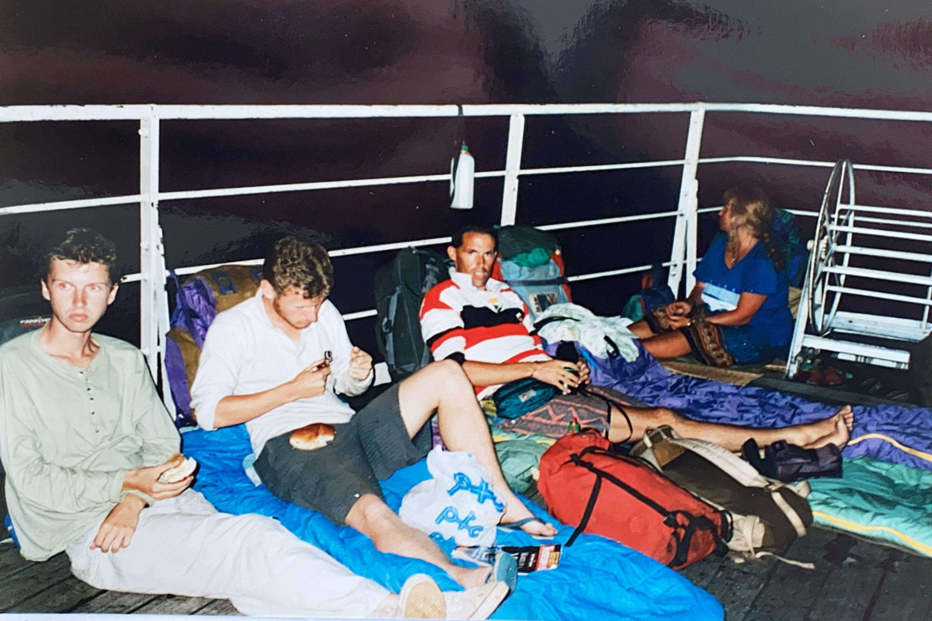 SUNDAY. Rain threatened at first light and we all moved inside the second class cabin, but by 9:30 it was fine again so we all moved back outside.