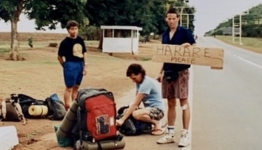 SATURDAY 7 DECEMBER – ARSEHOLE We met Steve and Nick at the roundabout below the golf club, and we hiked out of town to another roundabout where the road lead to the border. We had a couple of signs with HARARE PLEASE written on them, and we settle down to play a card game called Arsehole¹ while trying to flag down a ride.