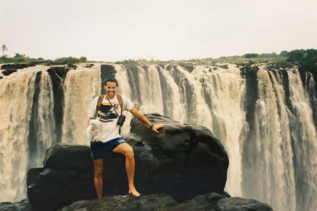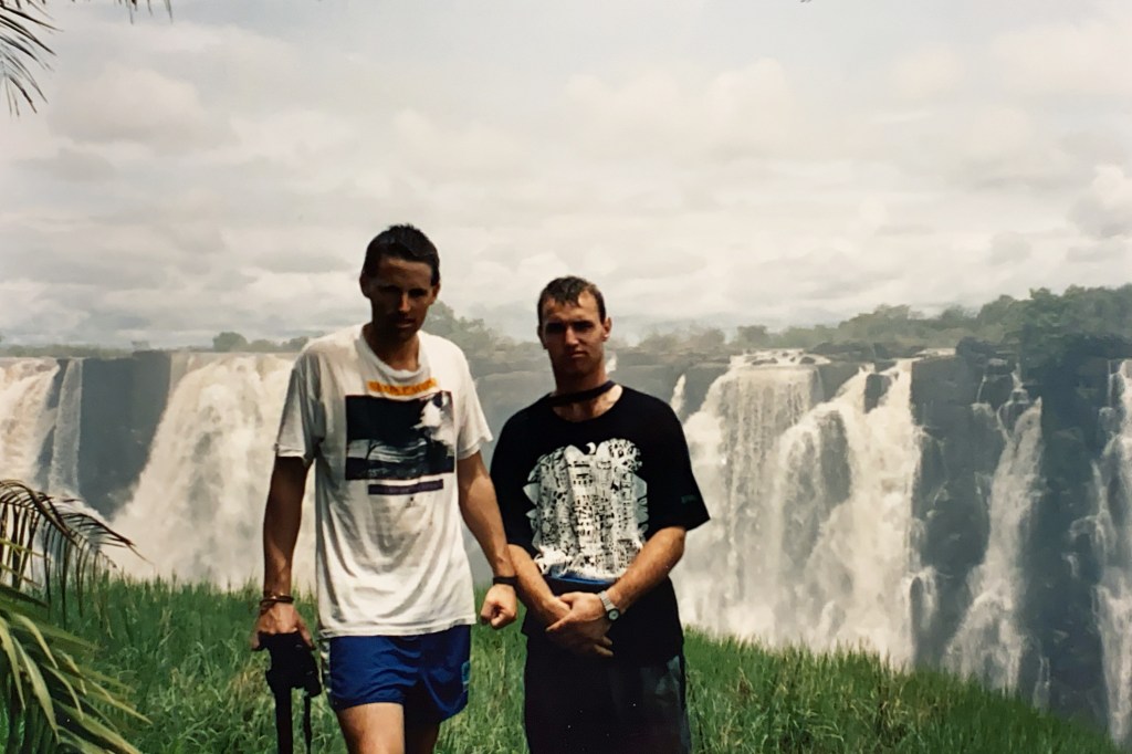 The Zambian side has none of the crowds of tourists, safety barriers and fees, that the Zimbabwe side features. Here there is just rock, water and adrenaline. The falls were almost close enough to touch, and the only thing to hold you back from the edge is your own courage…or lack of it. Jim and I followed a narrow, slippery track along the very edge of the precipice, while Linda and Corina took the safer concrete path, stopping every now and then to lie out on the edge and peer into the swirling depths. At the apex of the cliff, Jim and I climbed out onto a small pinnacle of rock standing out above the river as it left the falls, much to the fear of Linda and Corina, then we walked back through the dripping forest and along the track leading upstream. About 100 metres above the falls, we spread out clothes out to dry in the warm sun while we sat and talked with a couple of Australians.