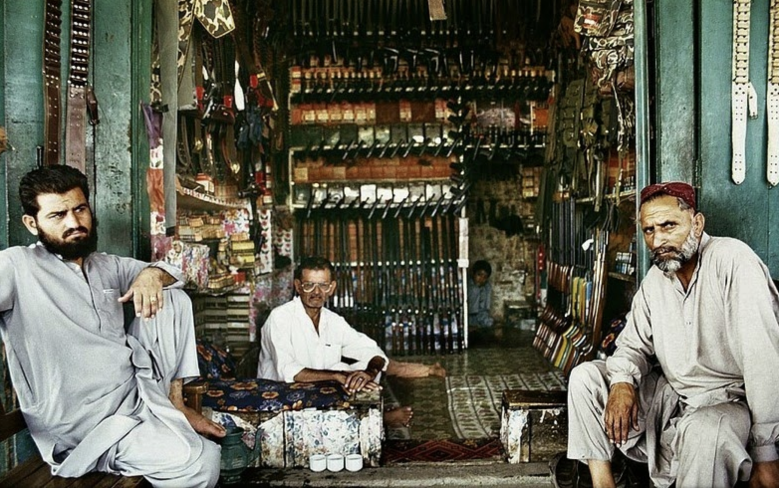 The street was awash with mud and rainwater, and we trudged along it looking for a chai shop. We asked the guy with eyes like strings for chai and he replied furtively “yes, hashish, hashish!” Shots were ringing out everywhere and every shop was full of a murderous array of armaments.