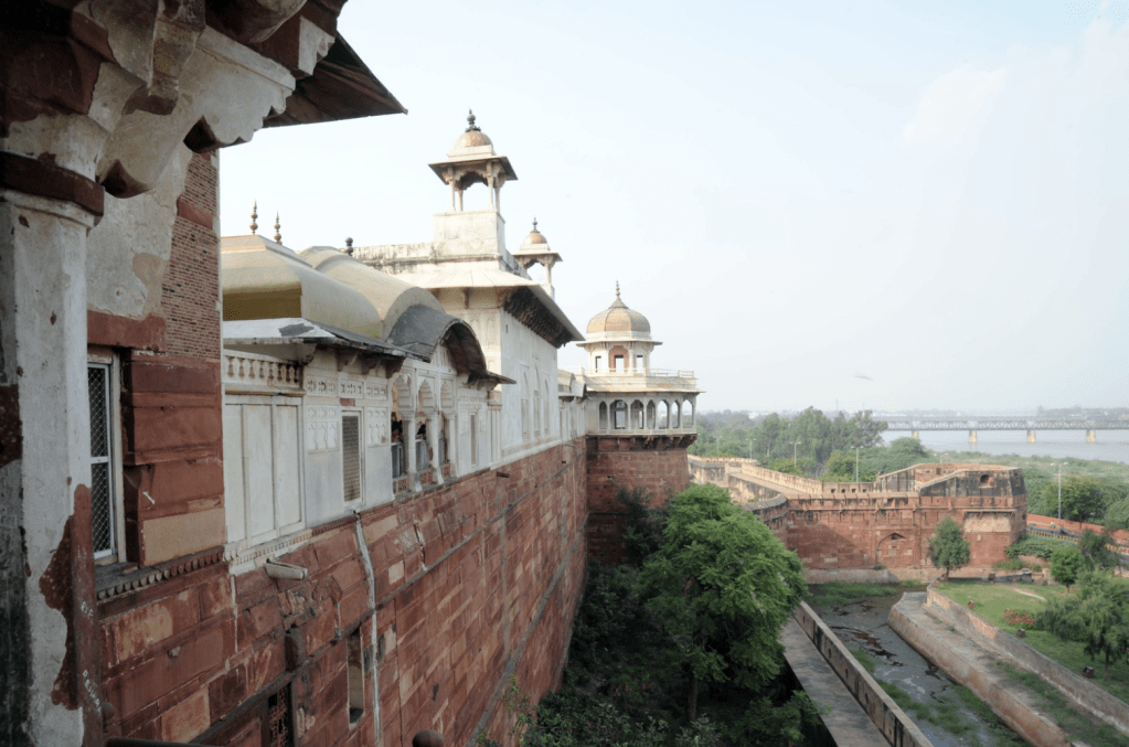 The fort was huge and impressive with massive walls of red sandstone and amazing rooms finished in marble. The view down the river to the Taj Mahal with superb, especially from the two round marble verandahs overlooking the river, from which the old Shah Jahan, imprisoned by his son, Aurangzeb, lived out his days staring longingly across to the tomb of his beloved wife.