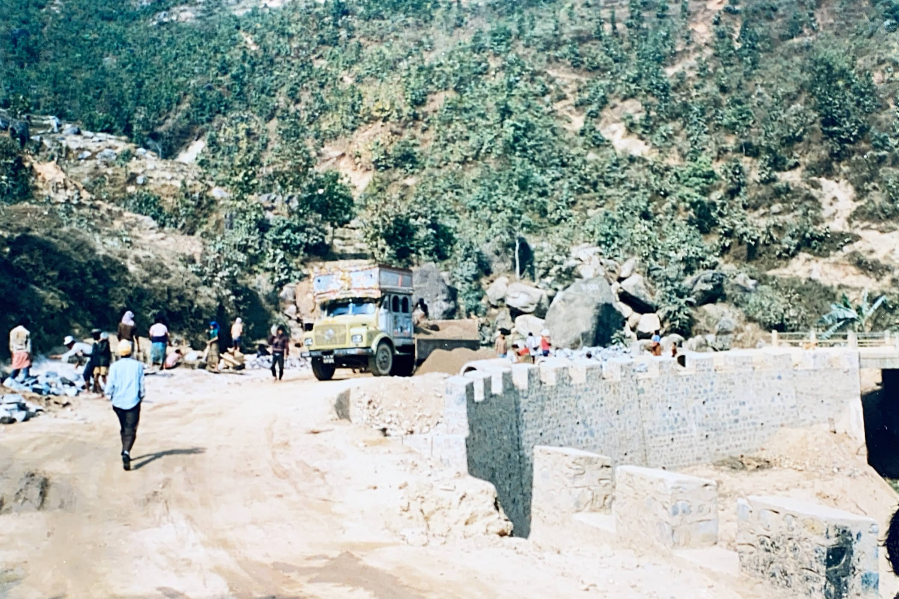 K’MANDU-POKHARA At 7:30 AM we caught one of the “tourist buses” [these so-called luxury buses were, in fact, the same rattletrap jalopies that the locals travelled on!] bound for Pokhara, a 10-hour journey away. A veritable convoy of buses made the journey which was through a pretty landscape of steep hills, river gorges and pastoral valleys.