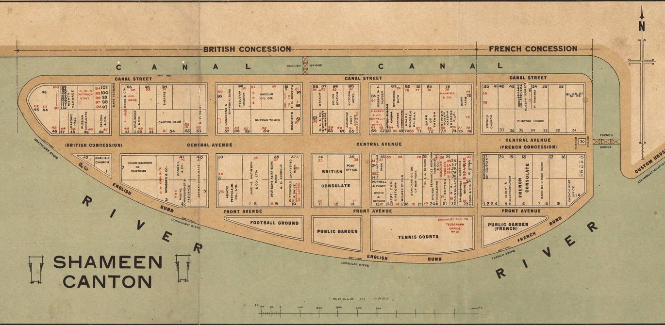 In 1859, Great Britain and France dug an artificial river (now called Shajichong) to the north, making it an island. Since then, Shamian became a strategic point for city defense during the First and Second Opium Wars. The British captured the Shamian Fort in the Canton River operations in March 1841 during the First Opium War. In the 1847 expedition to Canton, they seized the Shamian batteries along with the rest of the forts guarding the city. In the first armed conflict of the Second Opium War, the British recaptured the forts in 1856. (Source: Wikipedia)