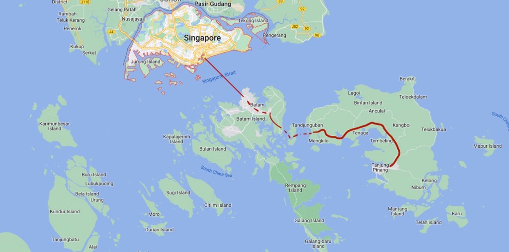We left the Why Not crashpad at 7:30 a.m. and walked down to Finger Pier. Barry stayed behind at the crash pad as he was planning to head up North for a few days. At Finger Pier, we bought speedboat tickets to Batam Island where we cleared Singapore customs. The trip to Batam, which is in Indonesia (see map) took about 40 minutes and we were aboard a brand new, high-speed ferry complete with aircraft type seats and videos, so we passed the time watching Beverly Hills Cop 2.