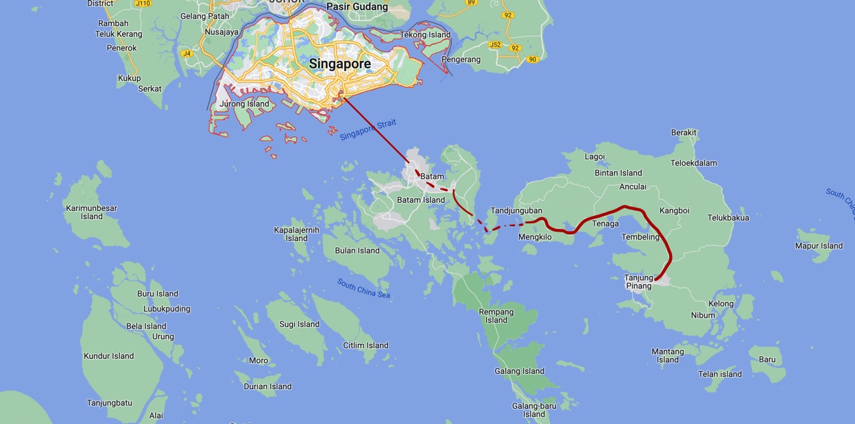 We left the Why Not crashpad at 7:30 a.m. and walked down to Finger Pier. Barry stayed behind at the crash pad as he was planning to head up North for a few days. At Finger Pier, we bought speedboat tickets to Batam Island where we cleared Singapore customs. The trip to Batam, which is in Indonesia (see map) took about 40 minutes and we were aboard a brand new, high-speed ferry complete with aircraft type seats and videos, so we passed the time watching Beverly Hills Cop 2.