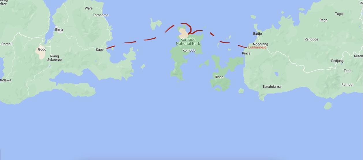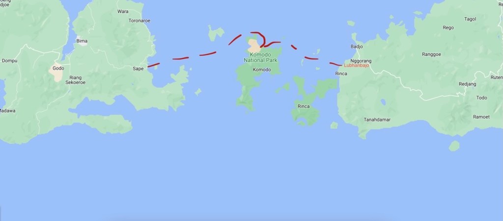 About an hour later, after we had dropped some people off at Komodo Island, we sailed back past the Three Rocks where the current was so strong that the engines of the ferry could only hold it in one position for several minutes before slowly inching forward out of the rip.