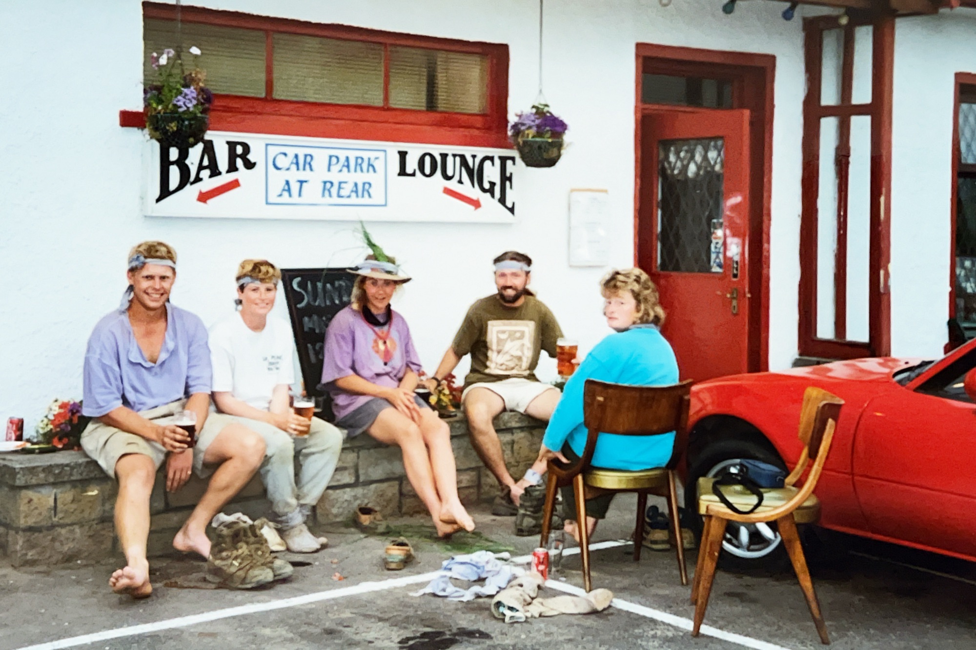 We rogued tatties all day, then at 6 pm, headed down to the Drum Inn again. I rode along with Jen in her Super MX-5 sports car, top-down, music pumping, and shades on. At the pub, we all sat outside, drinking in the warm, hazy evening light. We had African and Andean music playing on the car stereo, and the conversation was varied. They all tore my faithful old shirt off my back, as it was shredded beyond use. Each of us took a piece of material, faded by the light of a thousand suns, and made a headband from it. Magnus reckoned that it was such a well-travelled shirt that it had good karma.