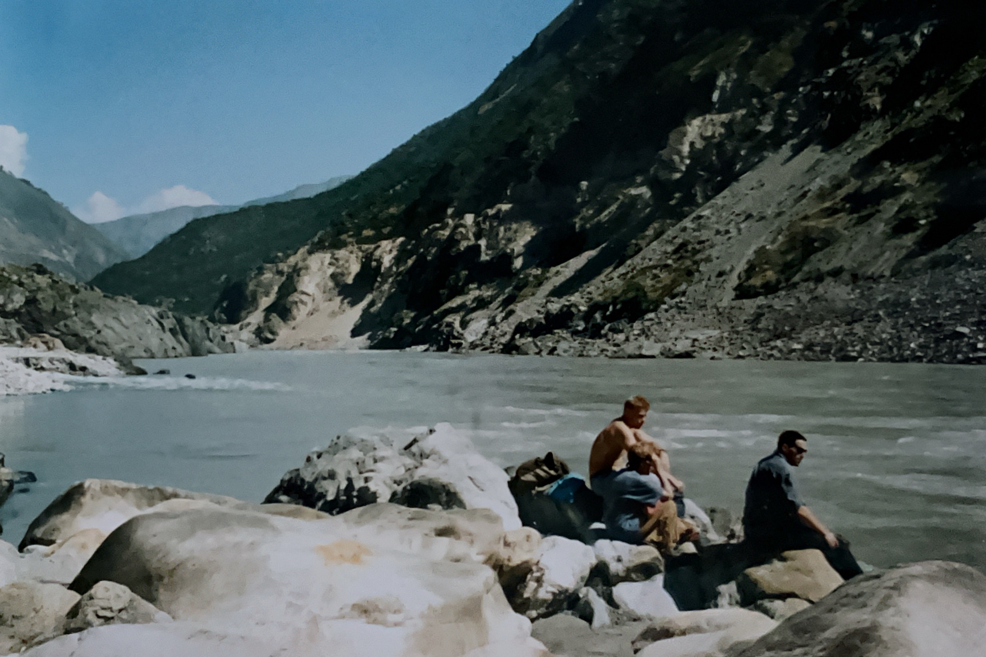 The mighty gorge of the Lower Indus is just as we remember it, although now, in late summer, the crops are full and harvest is in full swing. The slips that we had to dodge our way down from Besham in January 1992 are still there.