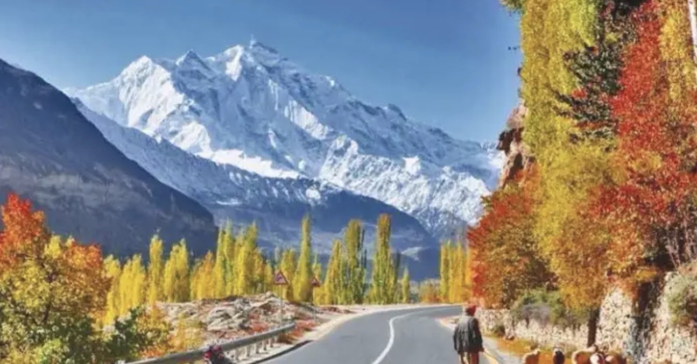 The road winds along the valley, sometimes cut through sheer bluffs far above the river, sometimes following the braided valley floor. At Chalt, the van stops to let the tourists photograph the north face of Rakaposhi. The face of the mountain towers above us, a sheer cliff of ice. From the mountain summit a plume of snow is being lifted by the wind and flung away to the east.