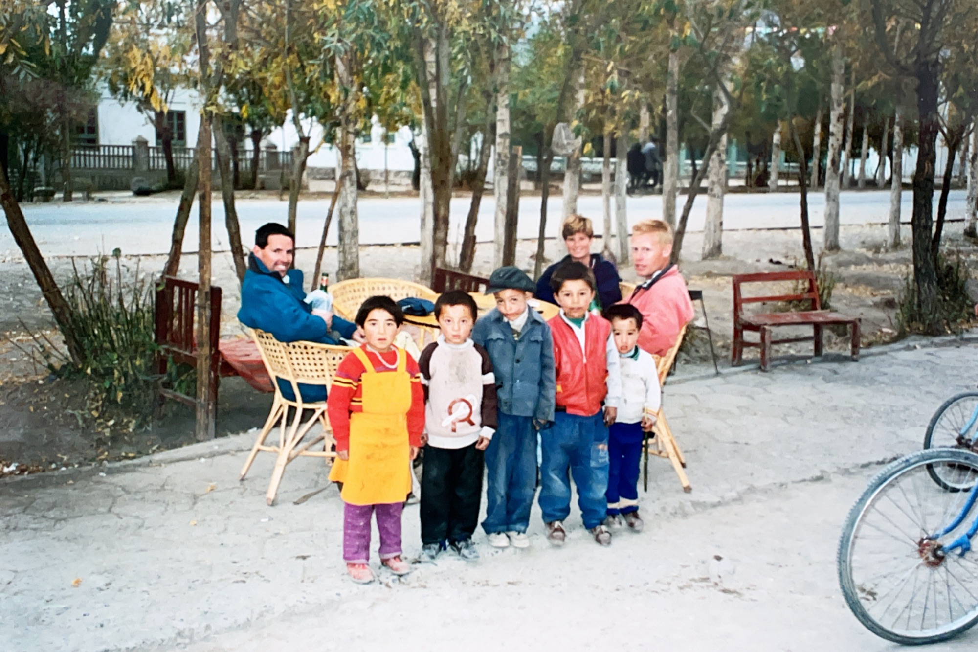 Crystal streams, wild horses, barren desert landscape, snowy mountains. Camels, donkeys, sheep, people and yurts. Dogs chasing the wheels of the Toyota. PSB officials in green uniforms with shiny brass buttons. At Pirali, a cold wind sweeps across a cluster of buildings, with snow blowing in from the north. We stop for a passport check. Two American cyclists are there and they ask for a ride to Tashkurgan. We are quite happy for them to sit on the back, but the avaricious driver wants 15 US dollars each from them. We leave them peddling forlornly into the headwind.