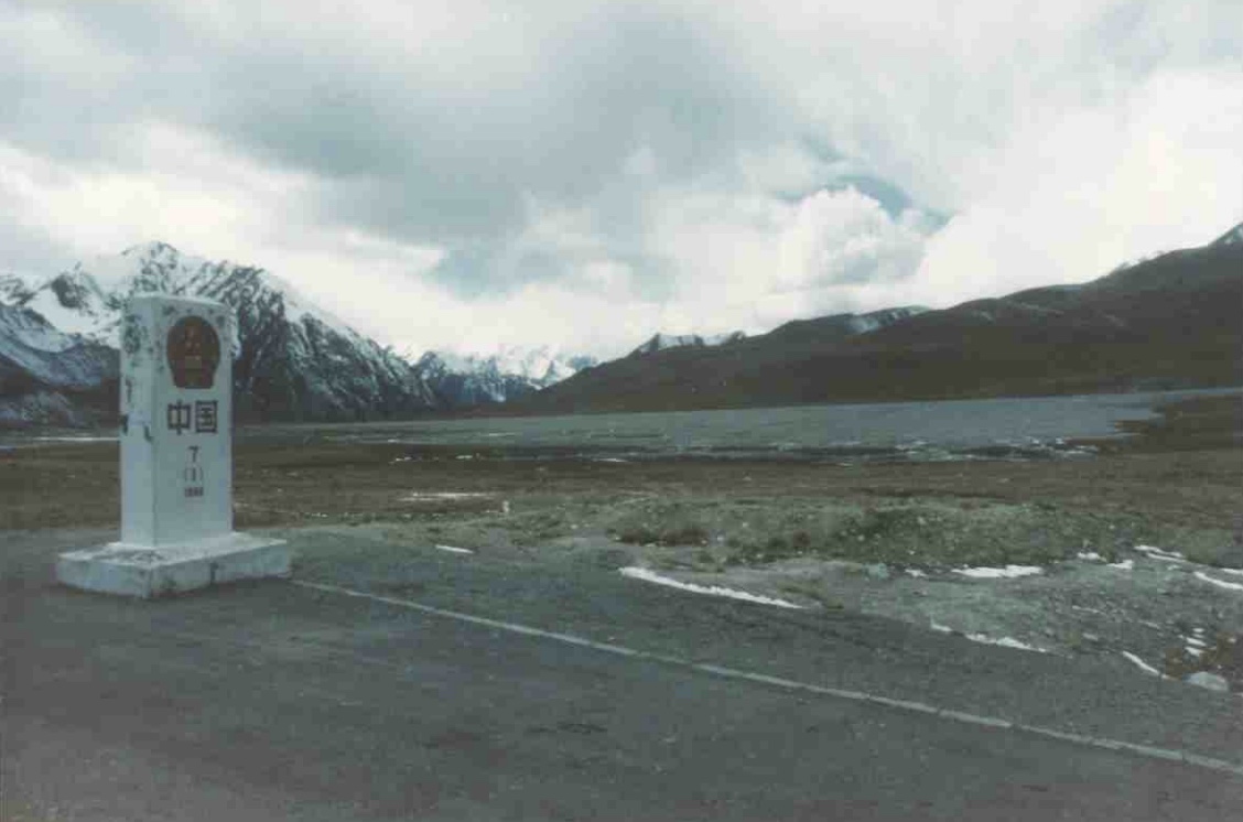 Rather than being a well-defined saddle or couloir, the Khunjerab Pass is more of a valley sloping downwards into China. It is hard to equate this high, lonely place with the teeming hordes of the People’s Republic. A large herd of yaks graze the brown, boggy alpine pasture: a sort of international herd with the freedom to move between the countries on a whim. At the very top of the pass, the last cheerful Pakistani post stands windswept and cold. Workmen are busy repainting the words A Tribute to Chou Enlai carved into a stone monument. The Khunjerab Glacier flows down directly towards the pass, with its surrounding mountains partially hidden in the cloud. It looks vaguely threatening. Beyond the checkpoints, two stone plinths mark the end of Pakistan and the beginning of China.