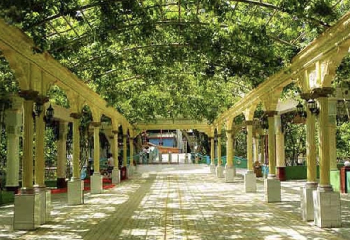 Becoming tired of sightseeing in a group, (and travelling in a group…read on!) Linda and I give the others the slip and set off to walk to the Emin Minaret, on the edge of town about three kilometres away. It was a pleasant walk in the long back lanes of the town, where wooden gateways gave us views into the walled compounds where the citizens of Turpan have their homes. The lanes were lined with poplar trees, and water ran in open ditches along the side of the streets. Grubby children played in the dirt and shouted, “Bye-bye,” a characteristic that Vikram Seth noticed in his book, From Heaven Lake, as we went past.