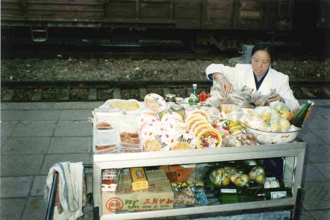 It is bitterly cold on the platform, and a few flurries of snow are borne on the freezing wind. I buy a sort of beer sausage from a vendor, who also sells a range of other foods, boiled egg, cooked chicken, pot noodles, fruits and nuts, and packages of nasty-looking pickled things. Back on board the train, I find my berth has become a seat for some new arrivals. My Chinese counterparts tell them to move along, then offer me a beer, which I drink while eating the sausage with a boiled egg.