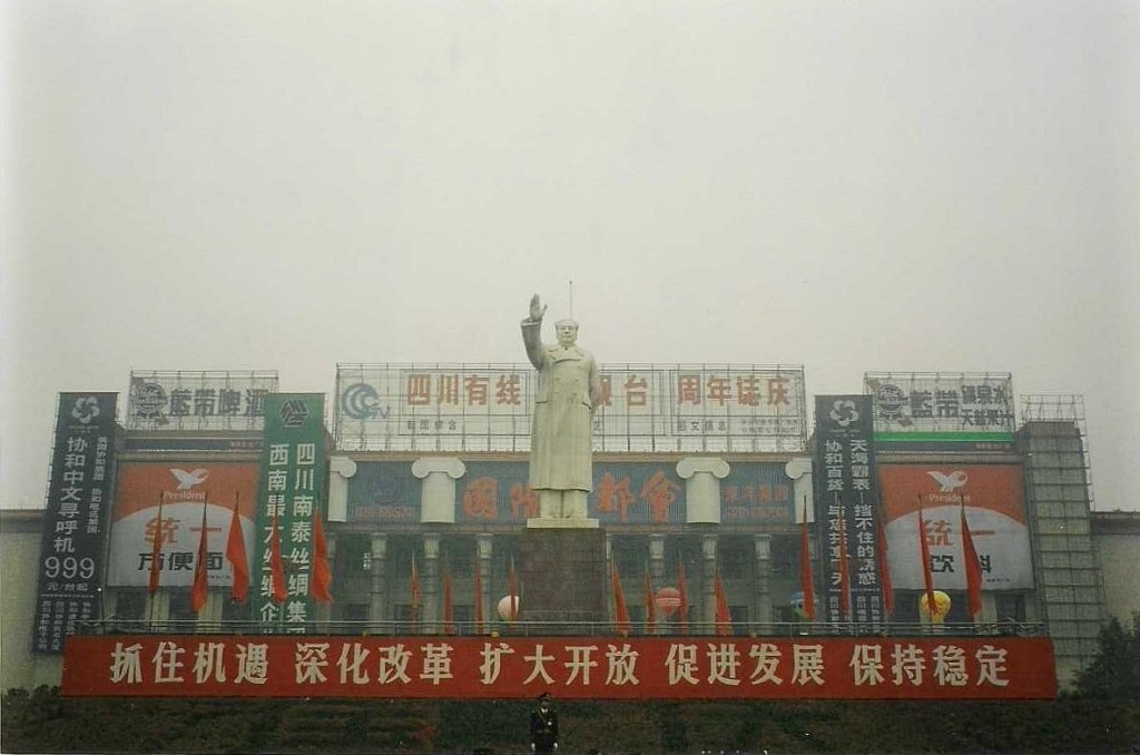 We waste the morning in a search for the English Language Bookstore, which proves to be full of books written in Chinese. At lunch, we sit watching red-clad schoolchildren arriving for their afternoon classes. Shouting and laughing, they look the same as schoolkids in any other country, up to mischief and dragging their feet as they enter the school grounds.