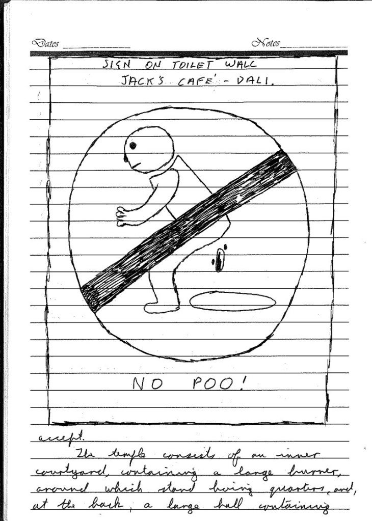 We have made a number of excellent new acquaintances here. A Canadian chap called Ryan, who has a large collection of CDs, several of which he graciously allowed me to listen to; two Dutch girls, Peggy and Femke, whom we first met in Lijiang; and a Dutch chap, whose name we don’t even know, who we dined with last night and who had us in fits of laughter with his travel stories. Along with lots of nice people – this is the first place on the trip where we feel that we are in a traveller’s hangout – there are plenty of prats: sour Israelis making lots of noise and swaggering around in large packs, snotty backpackers who seem so morose and unhappy that I often wonder “why the fuck did you leave home?”, and even the odd stoner, perhaps taking a holiday from Goa or Bangkok.