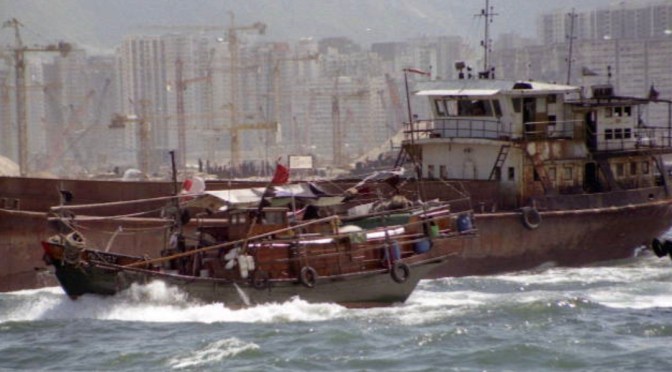 WEDNESDAY I join the commuter crowd on the morning’s early ferry, bound for Kowloon. Crossing the harbour, I look at the huge ships anchored in the bay, all of them facing eastwards in line with the prevailing wind and swell. Many of them are tended by small floating barges, each sporting a derrick, with which the barge’s loads of containers are hoisted aboard the vessel or unloaded for conveying ashore. In the distance, the enormous clusters of cranes on the Kowloon Container Terminal seem to mirror the towering clusters of buildings in downtown Hong Kong.